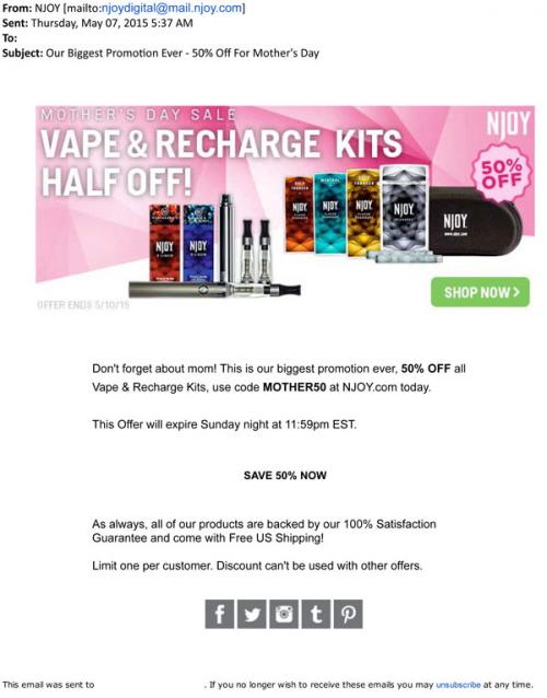 Coupon - Discount E-cigarettes E-mail Seasonal/Holiday