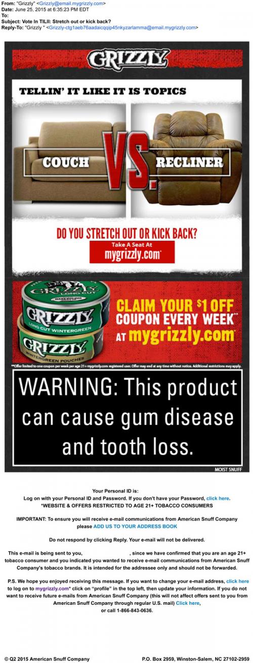 Coupon - Discount E-mail Smokeless Tobacco