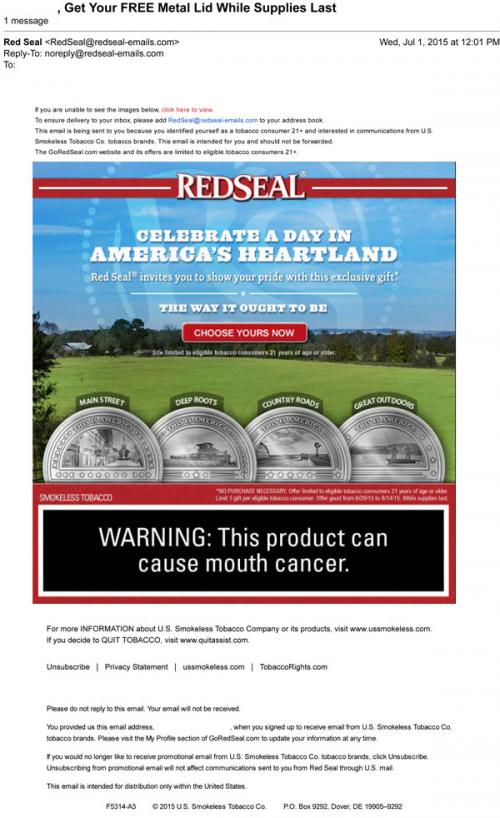E-mail Promotions-Promo items/Gifts Smokeless Tobacco