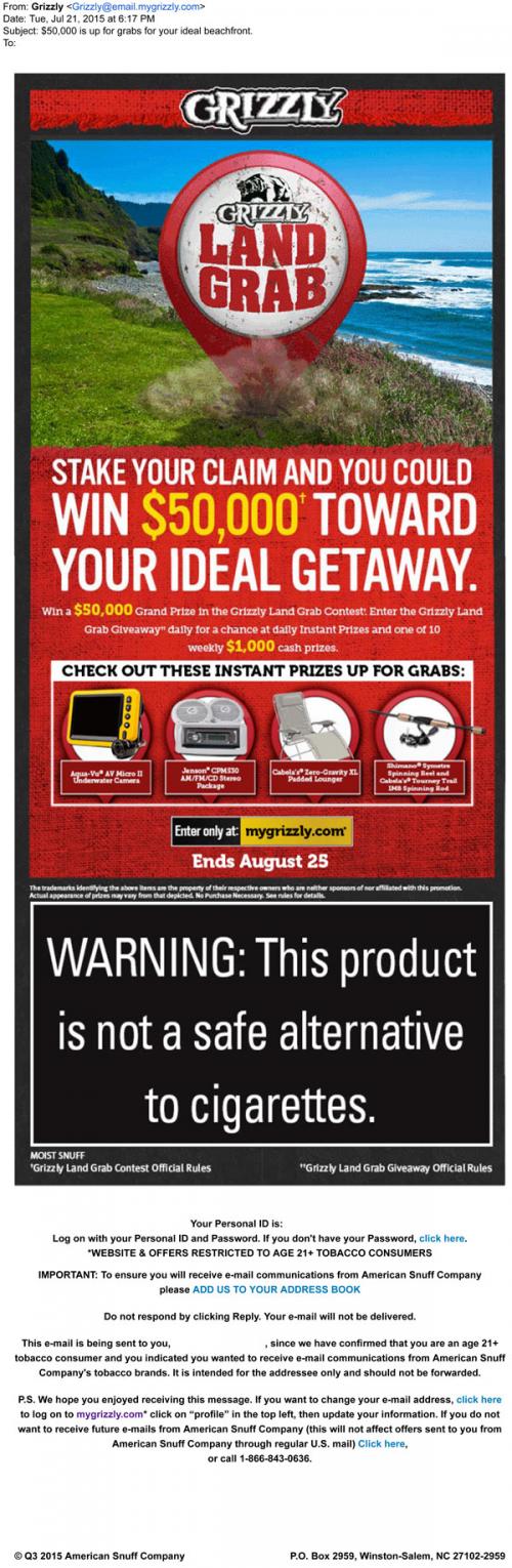 E-mail Smokeless Tobacco Sweepstakes