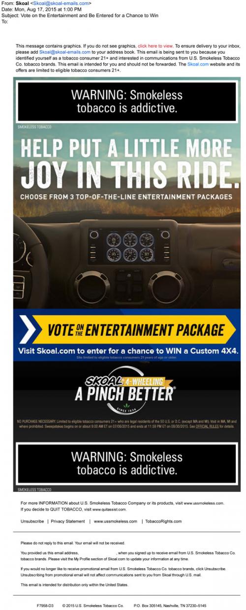 E-mail Smokeless Tobacco Sweepstakes