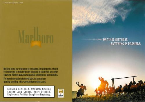 Birthday card from Marlboro delivering coupons in July 2015. "On your birthday, anything is possible. Run with it."