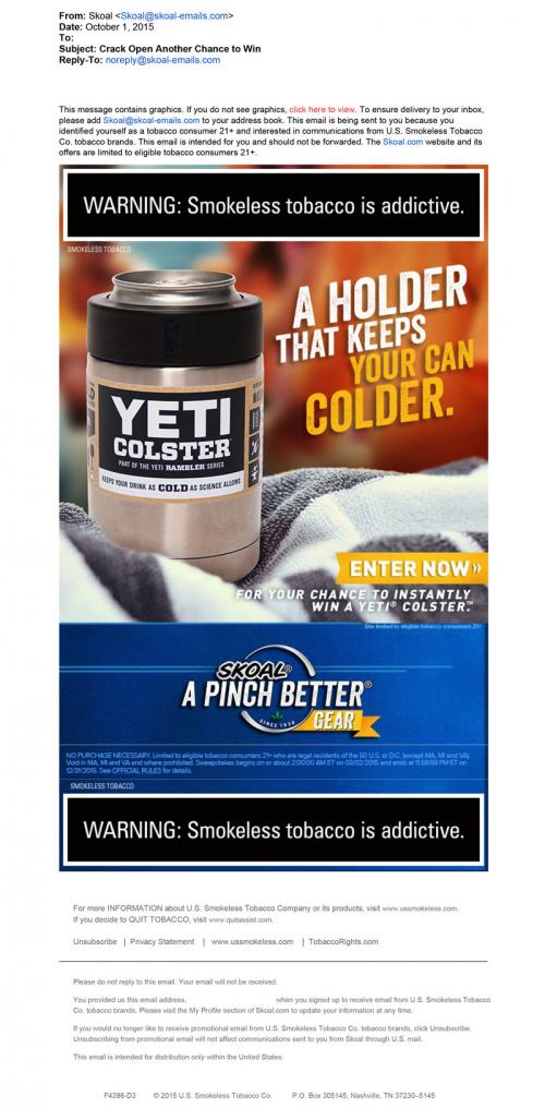 E-mail Smokeless Tobacco Sweepstakes