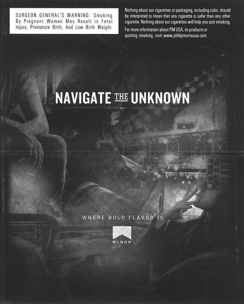 Marlboro direct mail for their Bold line of products, featuring NXT menthol and Edge, received in October 2015. Also includes a coupon for 2$ off a pack of Marlboro Black. Text: "Navigate the Unknown."