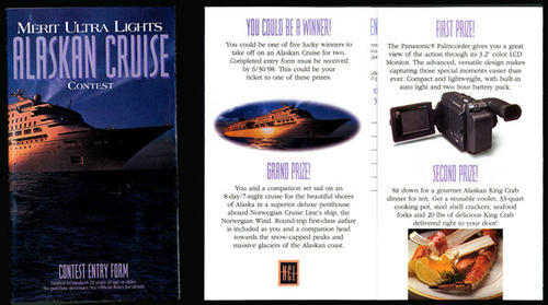 "Merit Ultra Lights Alaskan cruise contest entry form." Image of cruise boat.