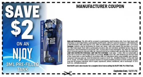 NJOY coupon included in recent emails in 2015 and linked to on the brand