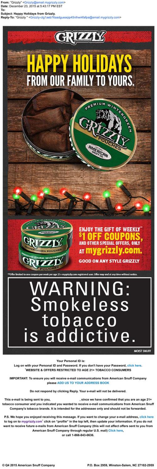 Coupon - Discount E-mail Seasonal/Holiday Smokeless Tobacco