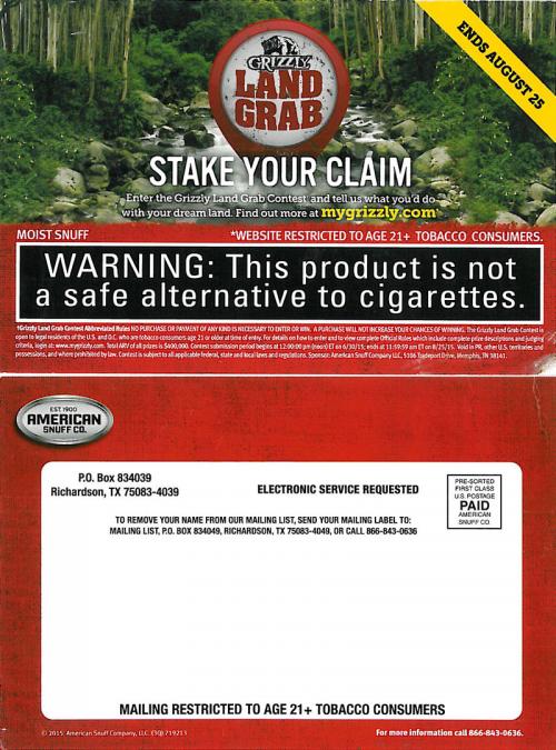 Direct Mail Smokeless Tobacco Sweepstakes
