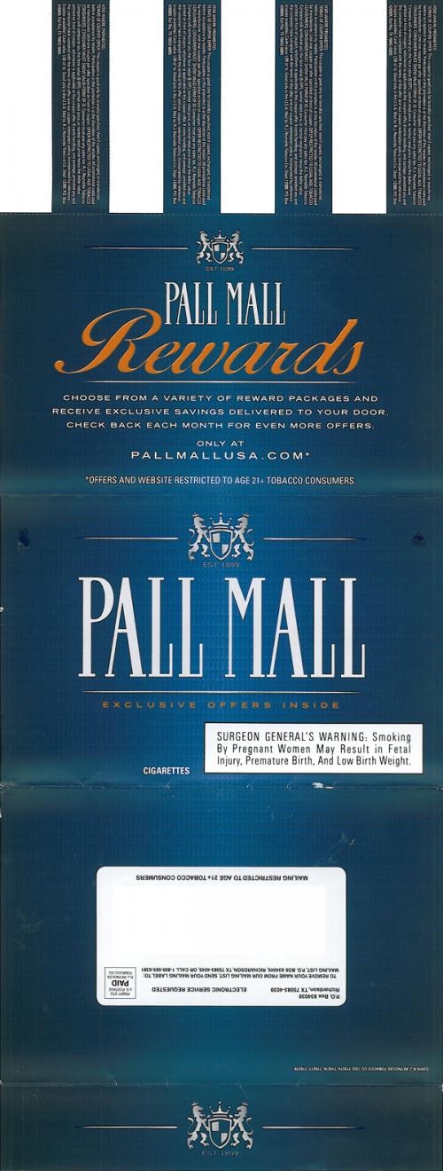 Direct mail from Pall Mall delivering coupons in August 2015. Images promote a variety of product styles. Invites the recipient to the brand website to check out more offers on their quality, long-lasting products.
