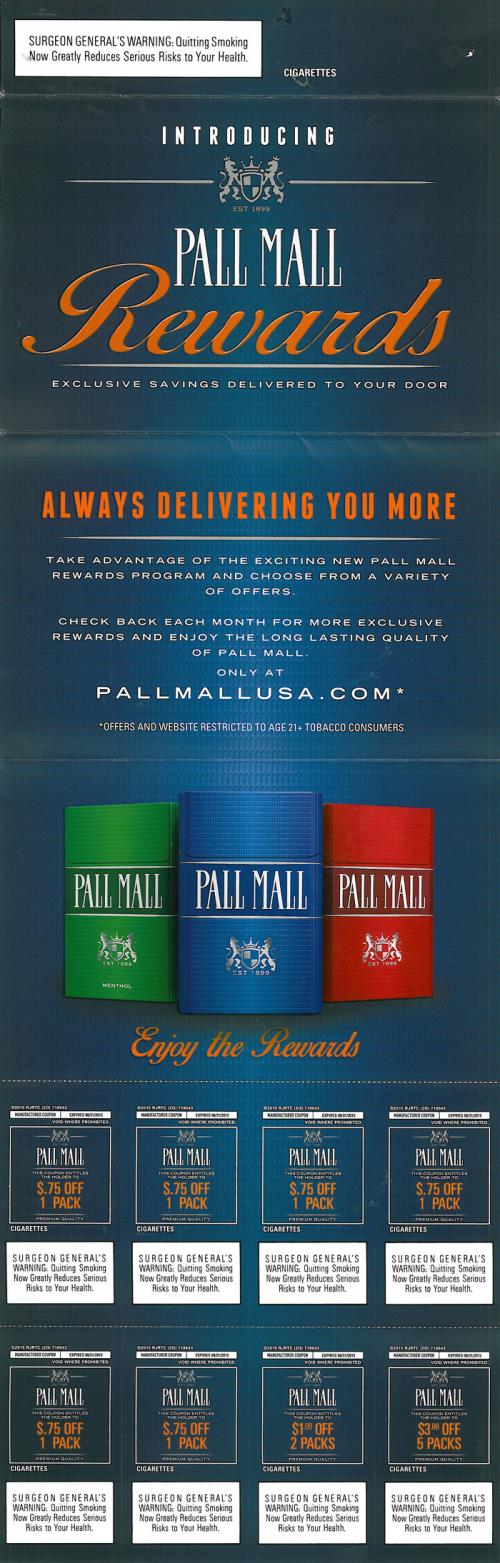 Direct mail from Pall Mall in May 2015 promoting their new Rewards Program with the advice to check each month
