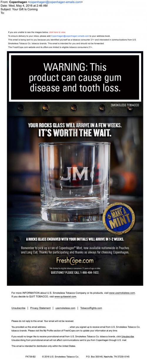 E-mail Promotions-Promo items/Gifts Smokeless Tobacco