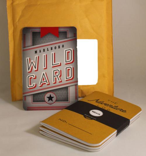 Marlboro direct mail gift sent in January 2016 as promotion for the Wild Card sweepstakes. The gift was chosen from three options on the brand website and contains three Adventure Log journals for recording where and when outdoor trips occurred. The gift arrived in a plain bubble mailer with a postcard thanking the recipient for participating.