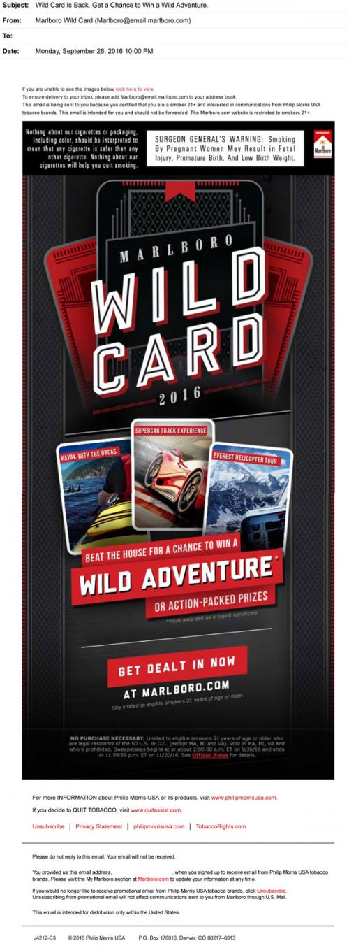 Marlboro email from September 2016 announcing the return of the Wild