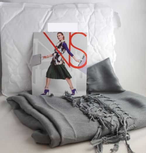 An instant winner in the Virginia Slims Style Spree sweepstakes was sent a "chic scarf" as a prize in October 2016. The scarf came in a white mailer with an included card that has some style tips for wearing it and thanks the recipient for participating in the sweepstakes. Text: "We hope you take some time for yourself and enjoy your prize. You deserve it!"