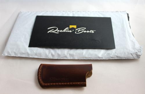 Direct mail gift from Marlboro received in November 2016 as part of the Rockin' Boots sweepstakes promotion; arrived in a plain white mailer. A leather lighter sleeve was claimed on the brand website after the recipient designed their first pair of boots to enter the sweepstakes. An included card thanked the recipient for participating, and encouraged regular visits to the site to see more content and promotions.