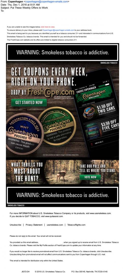 recipient is directed to the brand website to sign up. This version of the email features their mint and wintergreen products. Also links to a