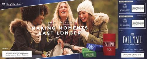 Direct mail from Pall Mall received in December 2016 delivering coupons and stressing that the brand is "always evolving to what's relevant."