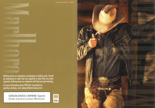 Direct mail from Marlboro Gold received in January 2017 delivering coupons, complete with imagery of horses and cowboys. Also promotes the MHQ app to get weekly coupons sent to a phone, although the app is now only available on Android devices.