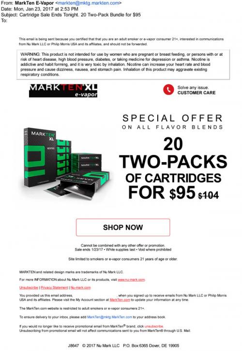 MarkTen email promoting an offer in January 2017 that gives bigger