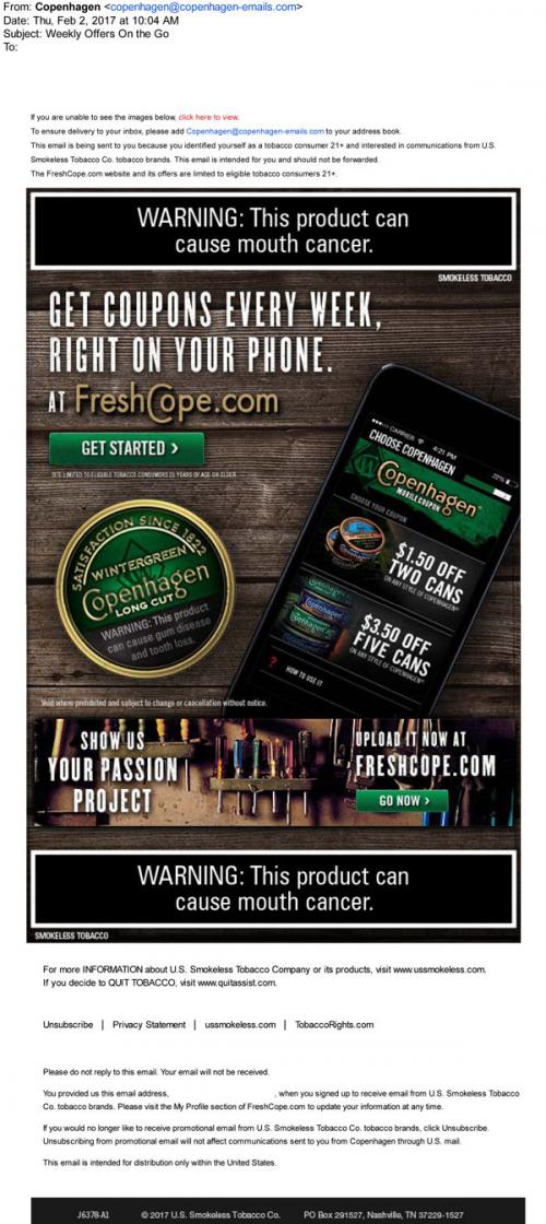 Email from Copenhagen in February 2017 reminding the recipient to use a