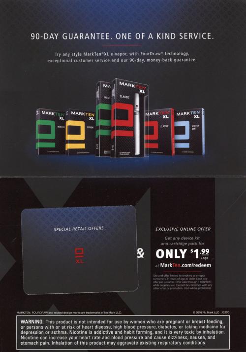 Direct mail from MarkTen received in December 2016. Promotes the brand's 90-day guarantee and customer service. Includes coupons and an exclusive online offer redeemable through the brand website.