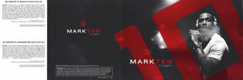 Direct mail from MarkTen received in May 2017 featuring an African-American DJ smoking an e-cig. Includes coupons. Text: "With FourDraw Technology for a full, rich draw."