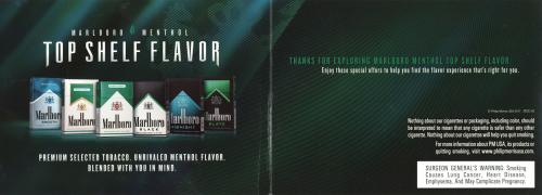 Direct mail from Marlboro Menthol thanking the recipient for exploring the Top Shelf Flavor event. Includes a plethora of coupons for discounts off of menthol products. Shows a lineup of the menthol styles available.