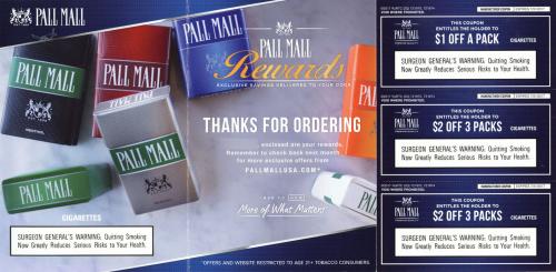 Direct mail from Pall Mall in June 2017 delivering coupons. Thanks the recipient by name.