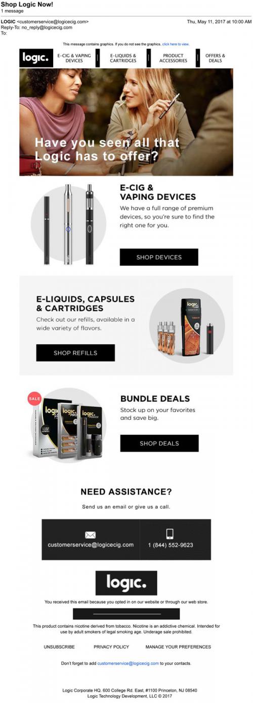 Email from Logic in May 2017 asking if the recipient has "seen all that Logic has to offer." Links to various products offered through their online store, as well as bundle deals to "save big."