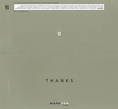 MarkTen sent a metallic silver envelope and card in December 2017 with the word "Thanks" on the front, delivering coupons and online offers as customer appreciation.