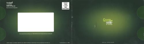 Direct mail from Green Smoke received in May 2018 with a special online offer, and including a description of their different flavor options. Image has a person gazing at a mountain vista.