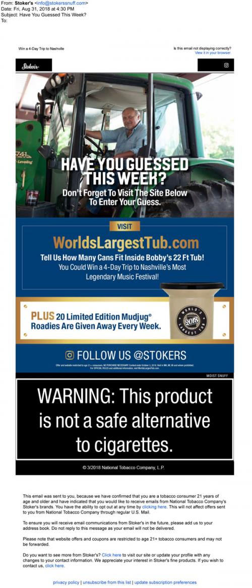 E-mail Smokeless Tobacco Sweepstakes