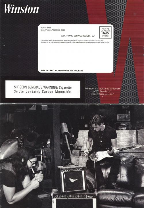 Direct mail from Winston received in October 2018 that promotes the new Winston Black product, and the availability of mobile coupons. Also includes coupons.