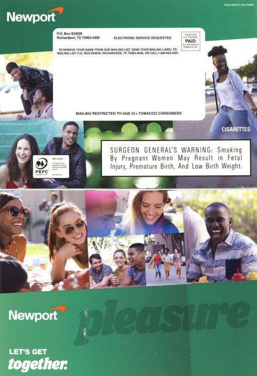 Direct mail from Newport received in October 2018 with many pictures of happy people, promoting their original and platinum menthol products. Includes a coupon and a reminder to claim mobile coupons. Text: "Let's get together. Because great things happen when friends get together."