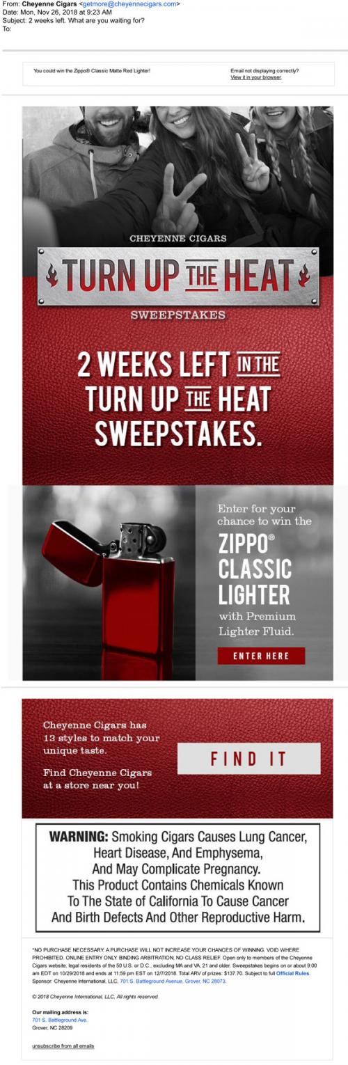 Cigars E-mail Smoking accessory-Lighters Sweepstakes