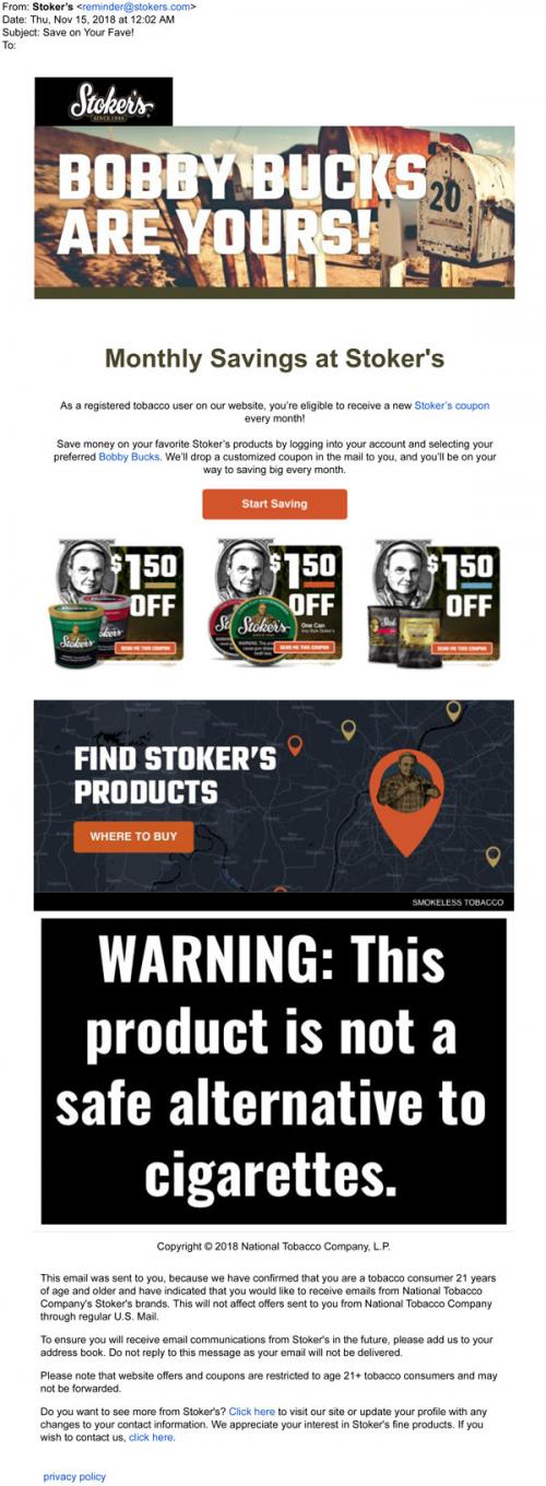 Coupon - Discount E-mail Smokeless Tobacco