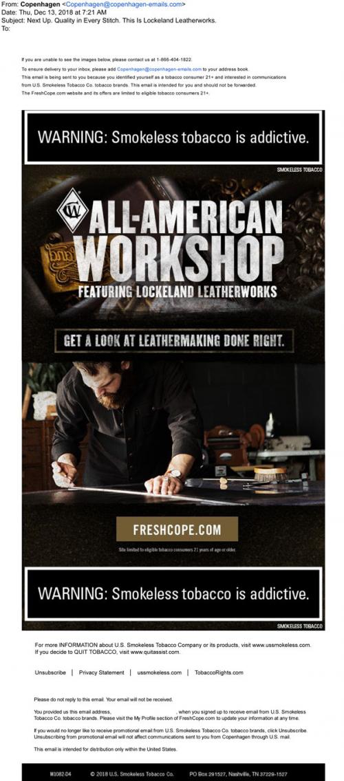 Email from Copenhagen in December 2018 promoting a new feature in the All-American Workshop series on leather making.