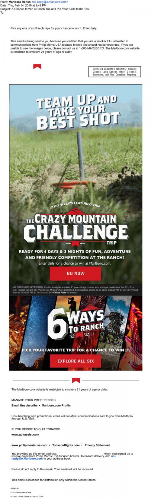 Marlboro Ranch, one specifically a team challenge adventure. Links to the brand website to learn more about