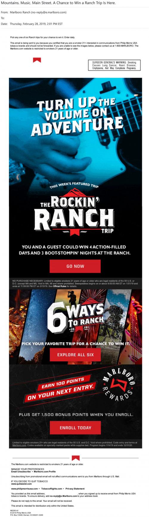 recipient to enroll in Marlboro Rewards to get points for every entry,