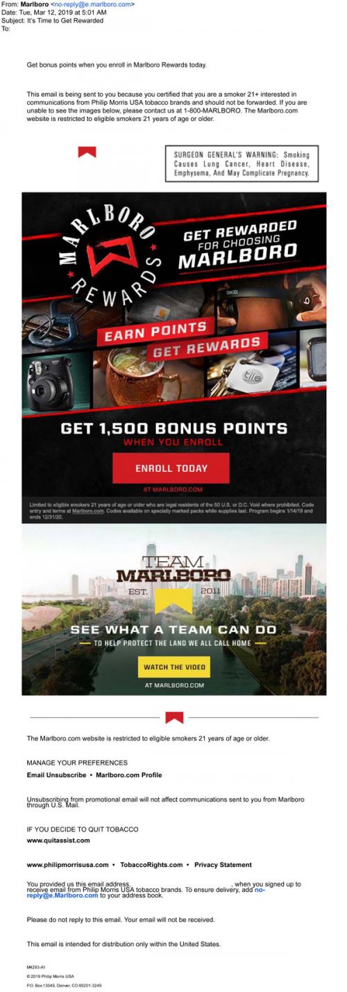 in March 2019 reminding the recipient to enroll in the Rewards