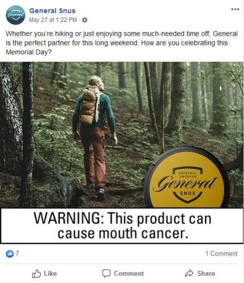 Memorial Day celebration question posted on the General Snus Facebook account.