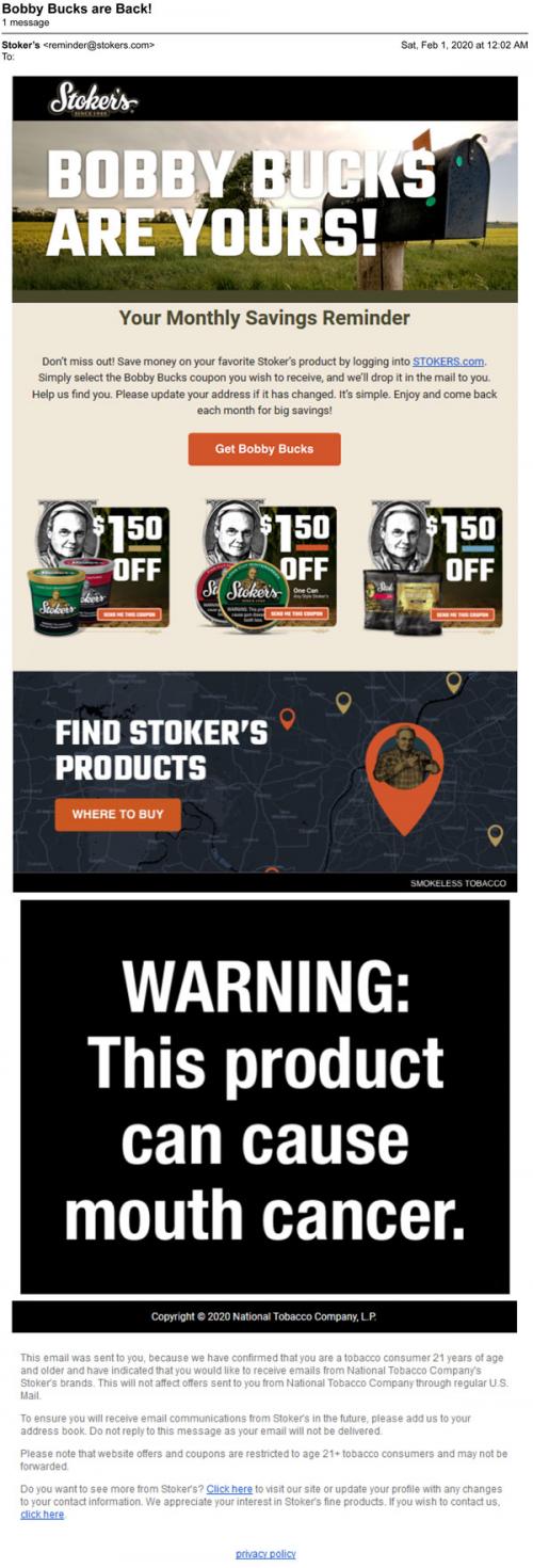 Coupon - Discount E-mail Smokeless Tobacco