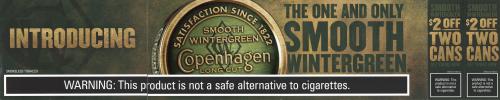 Direct mail from Copenhagen received in October 2018 that promotes their new smooth wintergreen product. Includes coupons and invites the recipient to the rband website to learn more.