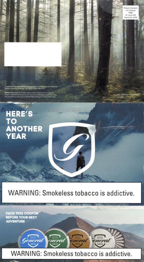 Direct mail received from General Snus in June 2021 wishing the recipient a happy birthday. Includes a coupon and a cocktail recipe.