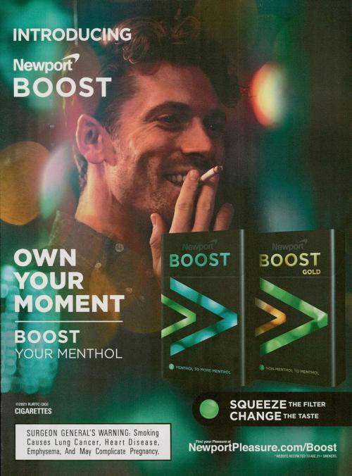Magazine ad promoting Newport Boost and Boost Gold, two