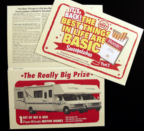"It's Back! The best things in life are Basic sweepstakes part 2" Yellow and red pack shown.