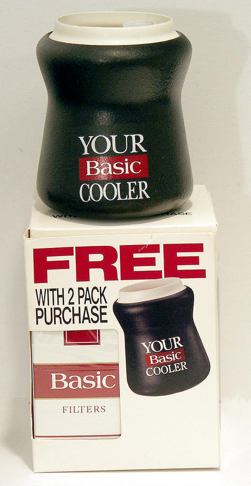 Your Basic cooler free with 2 pack purchase. Black with white trim and text on side.