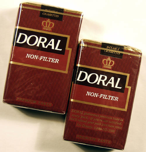 "Doral non-filter cigarette packs" Red and gold.