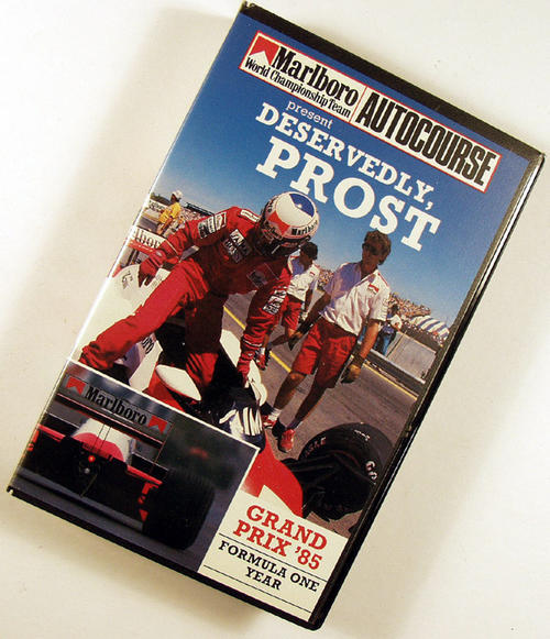 "Marlboro world championship team auto course present deserredly, prost" .. "Grand Prix '85 Formula One year.