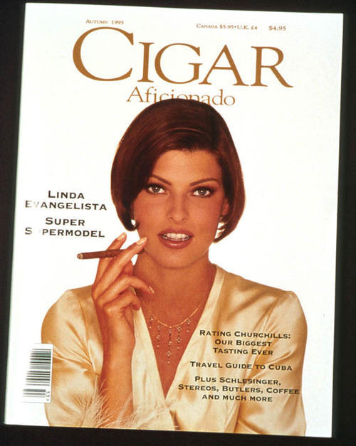 Cigar Aficionado - Cover photograph featuring Linda Evangelista, Supermodel smoking cigar.